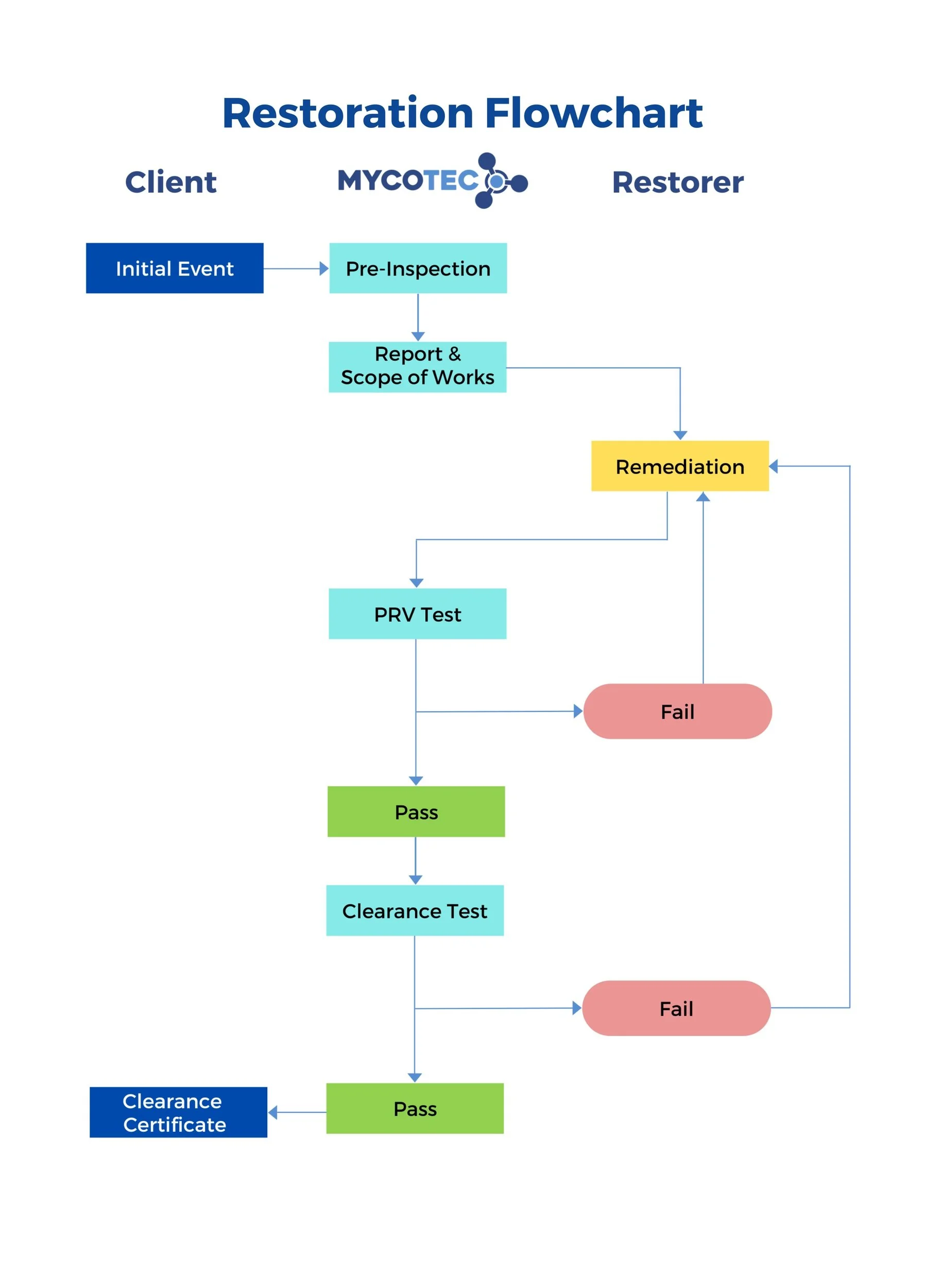 It is very important that the person who did the remediation does not also do the PRV testing, this is to ensure that the results have scientific value and there is no bias involved. That is why Mycotec remains independent from all remediation companies, so that we can check their work without being compromised.